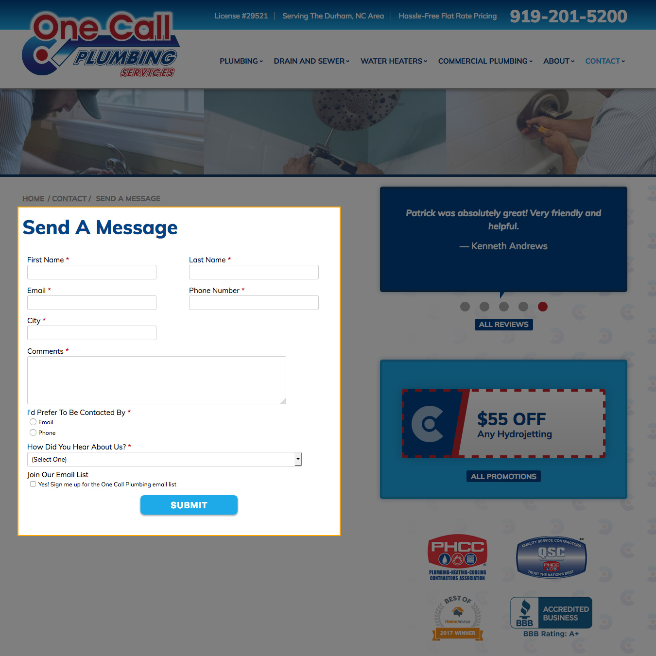 Each form includes a designated form page and a corresponding “thank you” page. Some sites may include mini forms on the subpage and/or homepage.