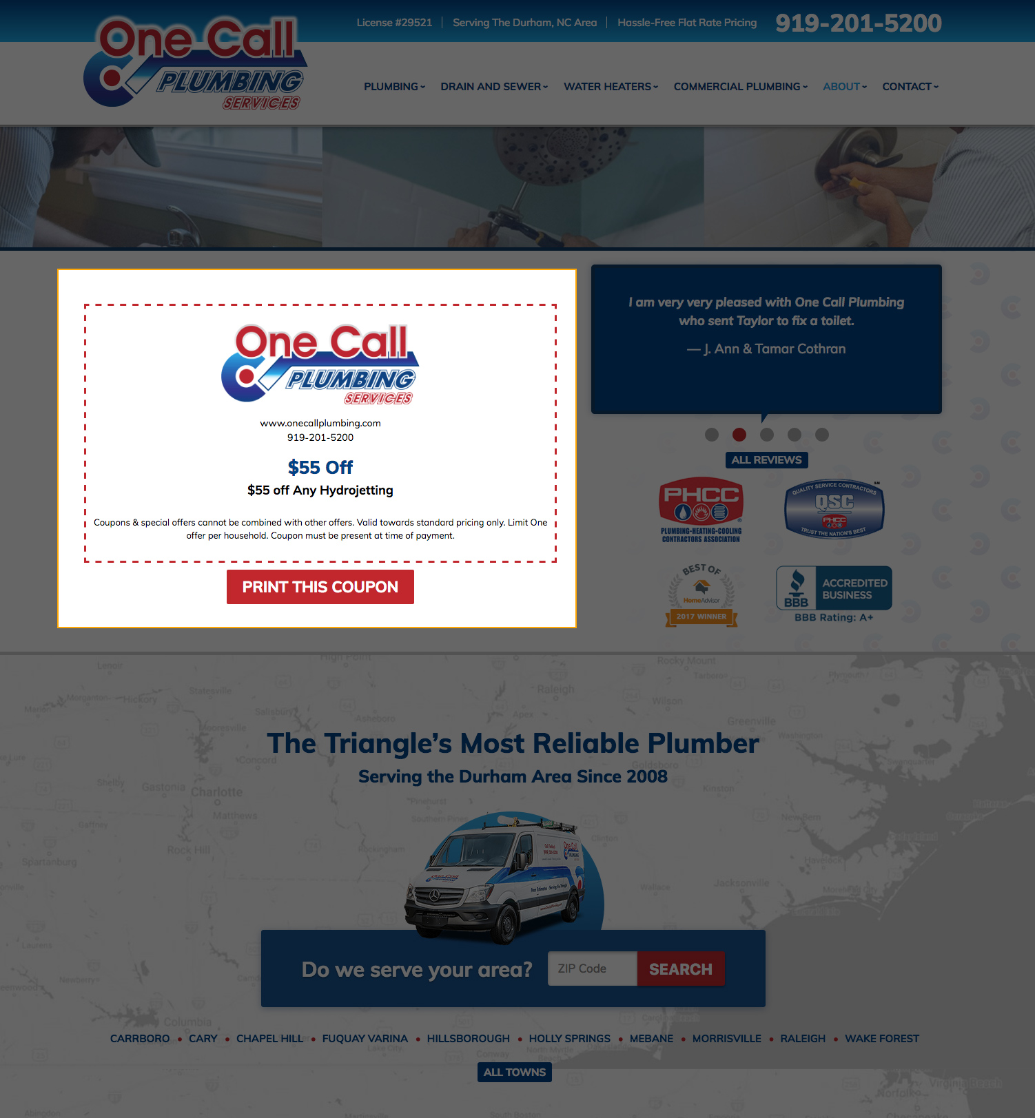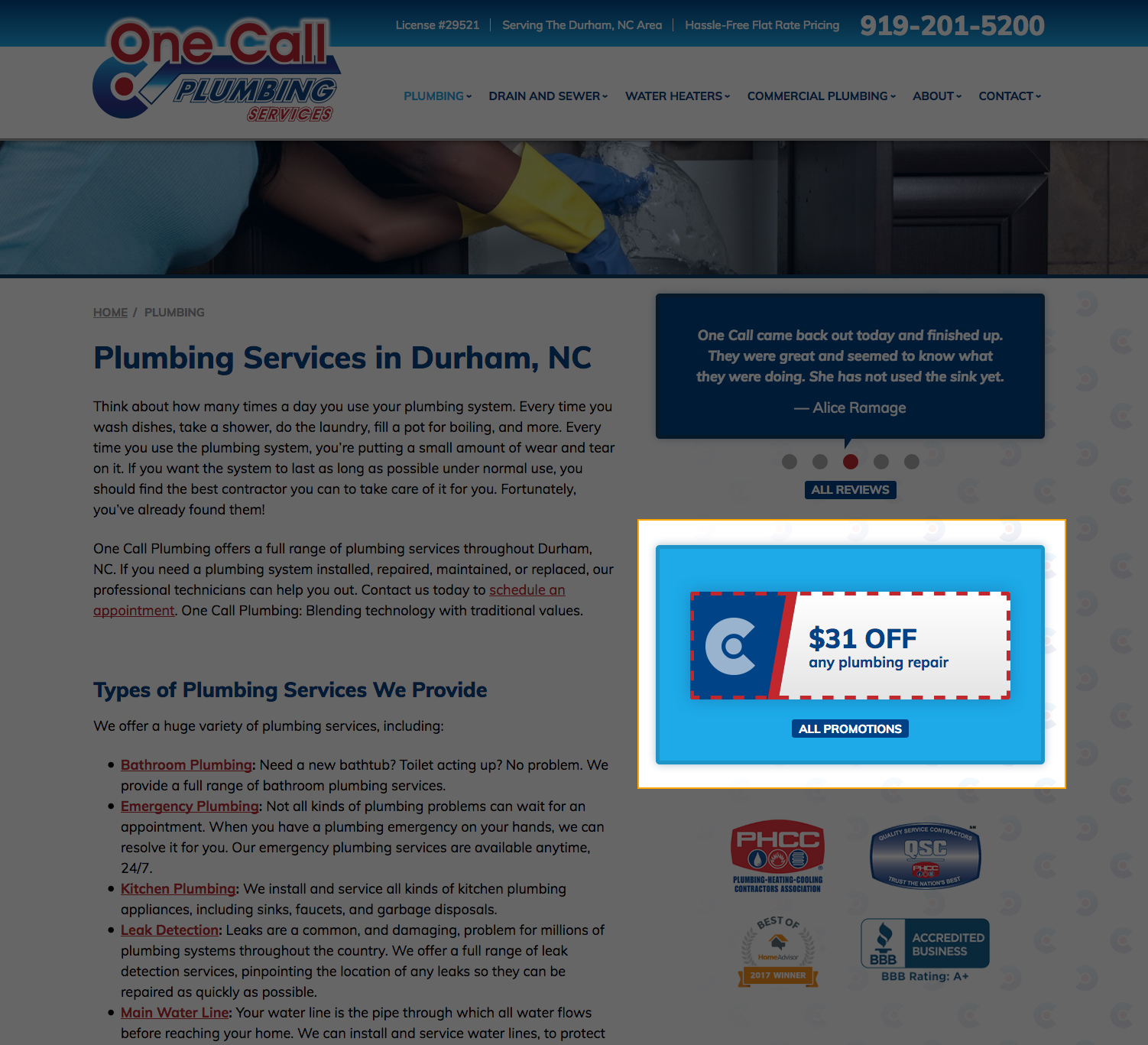 This page may also have the company logo, site URL, and phone number above the promotions content. Most newer sites will not have this element by default, but until Q3 2017 this was part of the default styling.