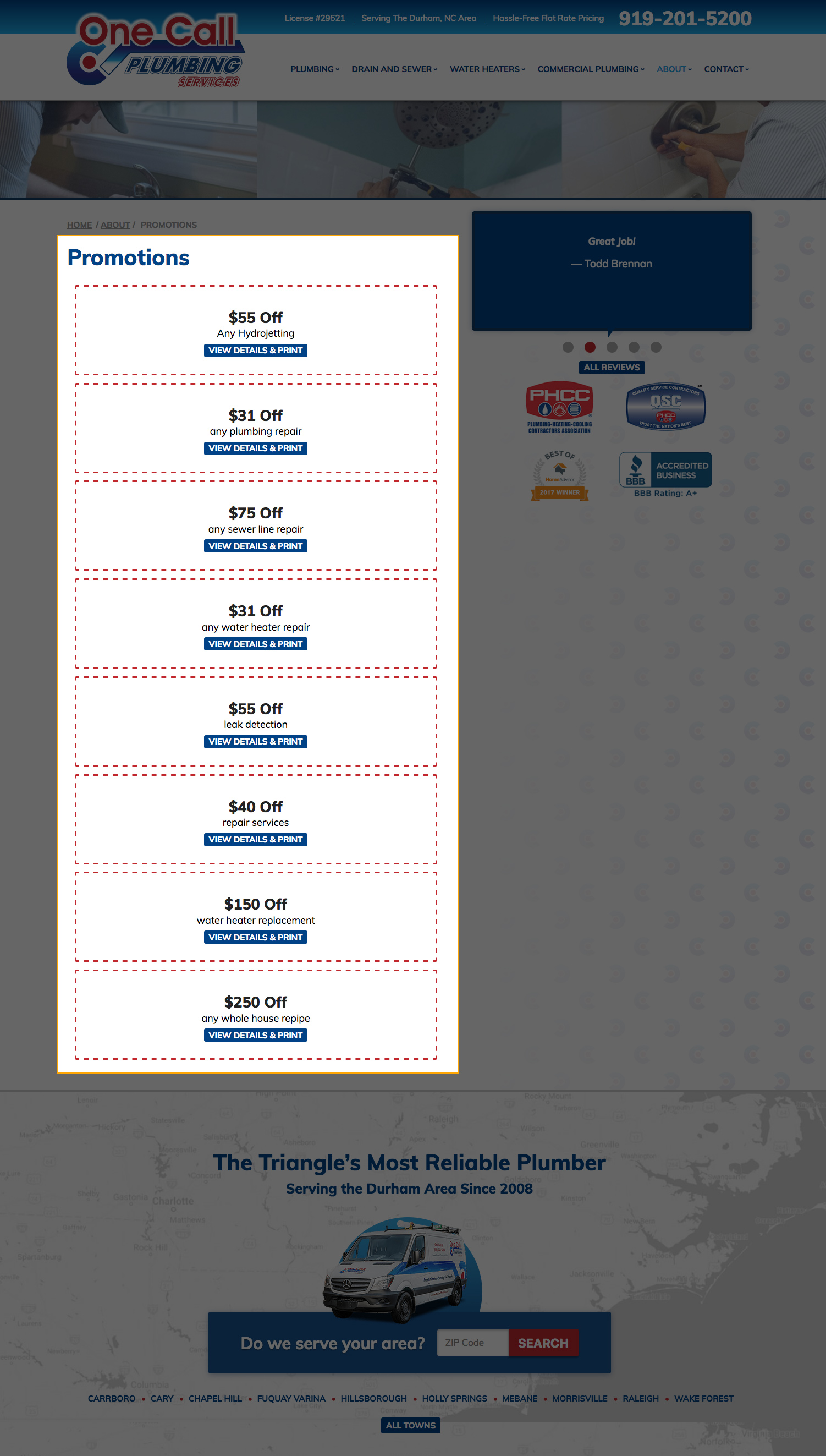 Each promotion is usually a link that connects to the Promotional Details Page for that individual promotion. There is also typically a “view all” link of some kind that links to the Dedicated Promotions Page.