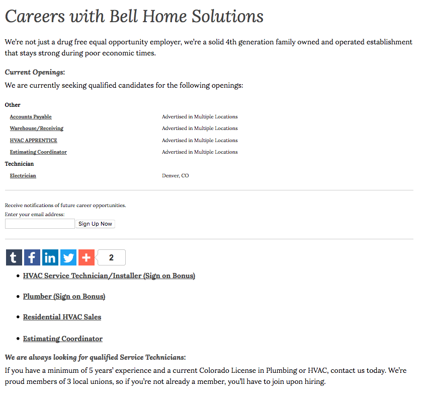 Clients may use a third party service to post/collect job applications. In these cases, the third party code is typically added directly to the careers page, either above or in place of the careers contact form.