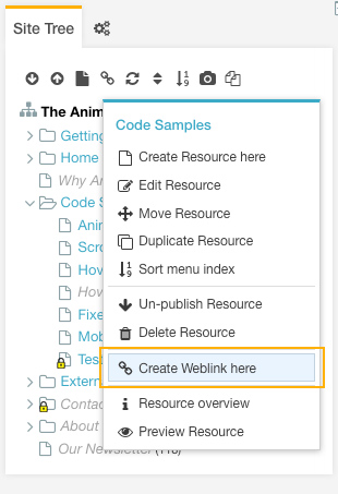 A weblink is a type of resource that simply links to another resource. These are mostly used for the purposes of extending navigation menus without impacting the sitemap.