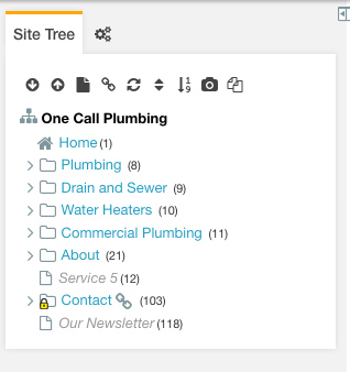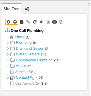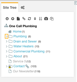 Sometimes the page you want will be within a section rather than a top level page. If this is the case, you will need to first expand the relevant section in the Site Tree. To expand a section, click on the downward arrow next to the section name. This will display a list of pages in that section.
