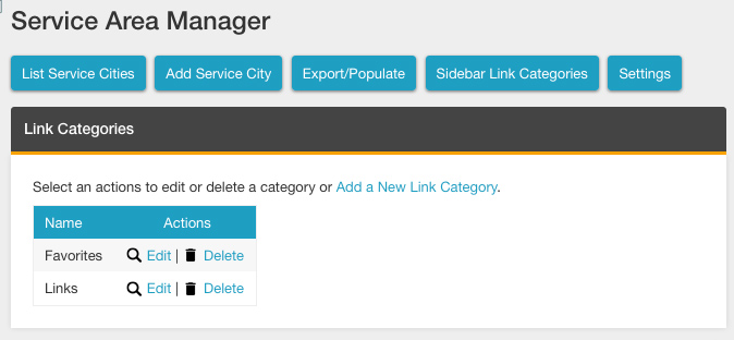 On older iMarket sites, this section was used to add blocks of content to the sidebar of Service Area Landing pages. Once a new category is added, it will display as an option when editing the City Links of a Service Area Landing page.